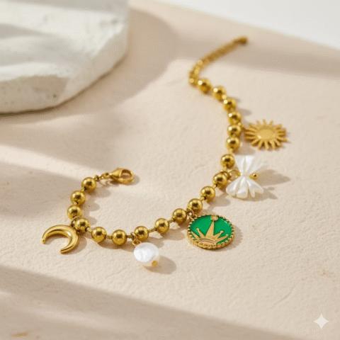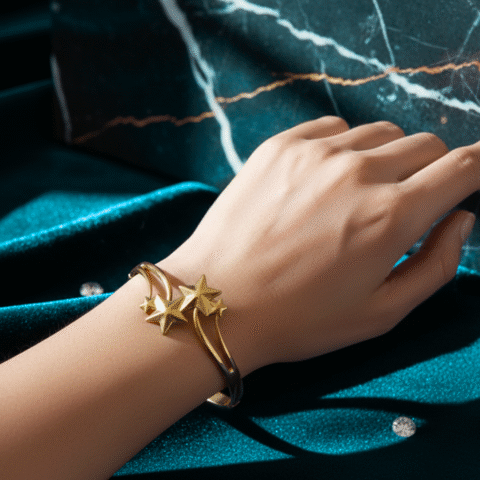 Golden Star Charm Bracelet – Stylish Adjustable Fashion Bangle for Women