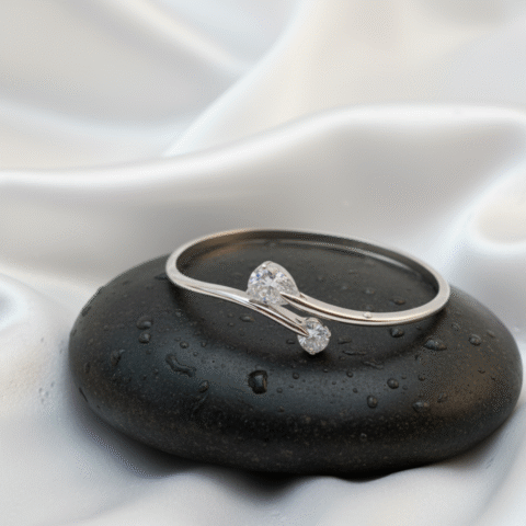 Star Bangle Bracelet for Women Stainless Steel Gold-Plated AD Studded