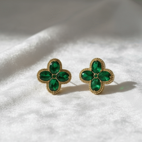 Gold-Plated Half-Flower Stud Earrings-Anti-Tarnish