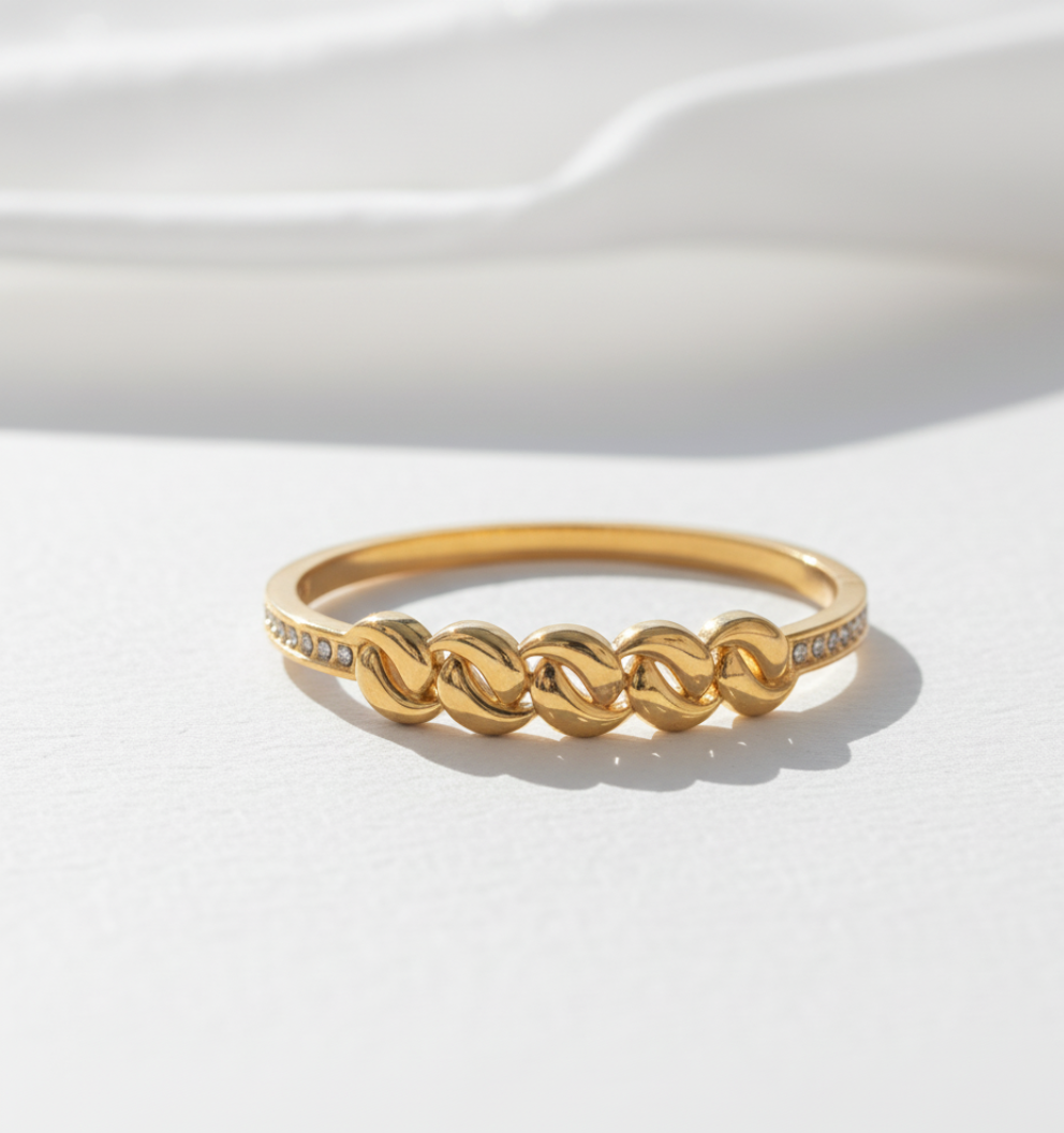 Gold-Toned Stainless Steel Chain-Link Bracelet with AD Stones | Anti-Tarnish