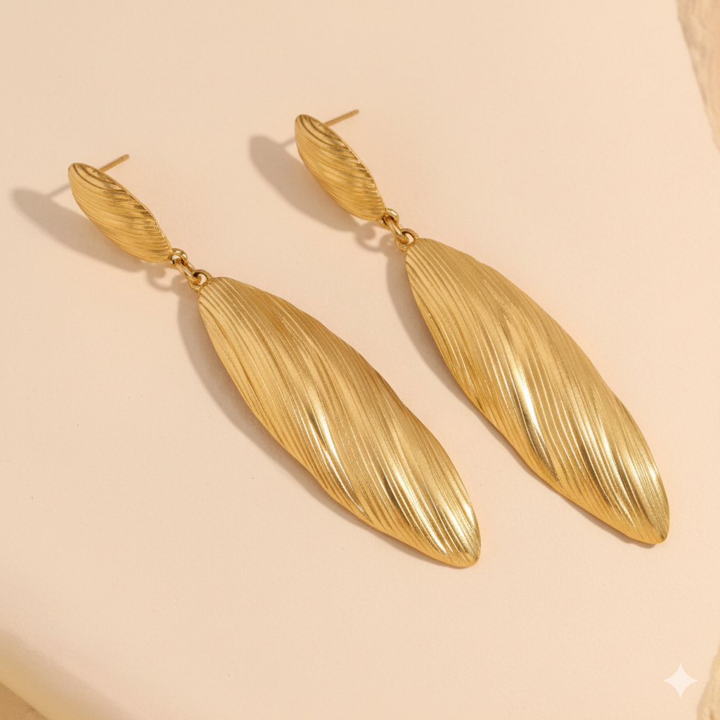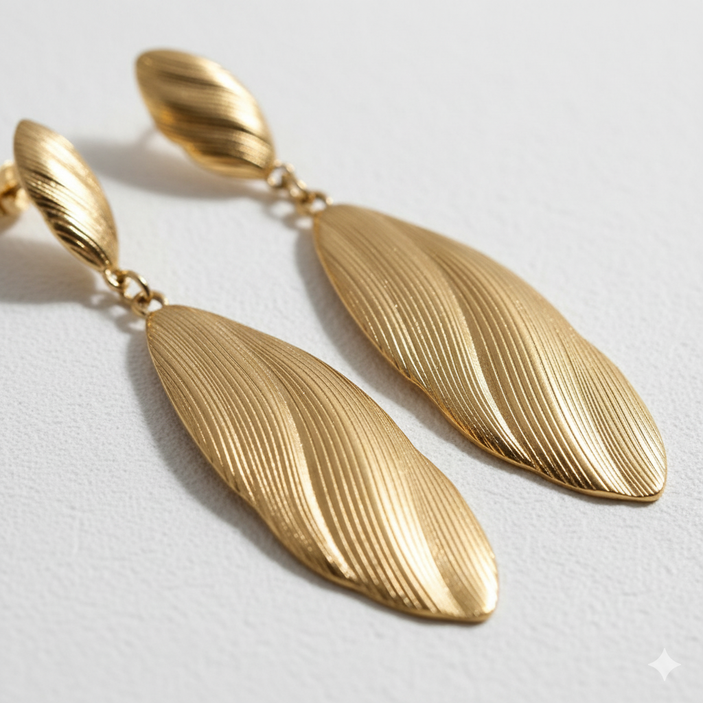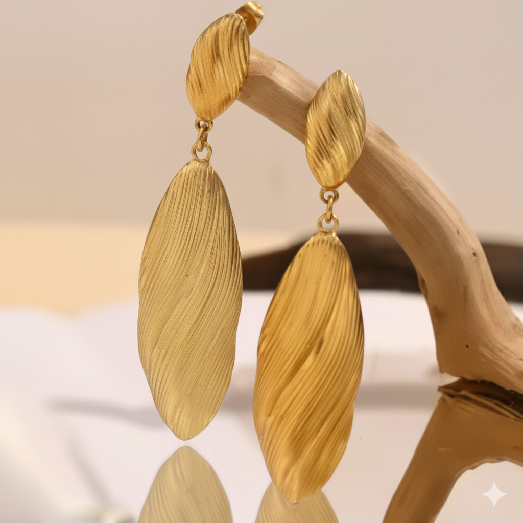 These Golden Feather Studs feature a textured design crafted in premium stainless steel for long-lasting shine and comfort. Lightweight, elegant, and anti-tarnish—perfect for everyday wear or a subtle stylish touch for any occasion.