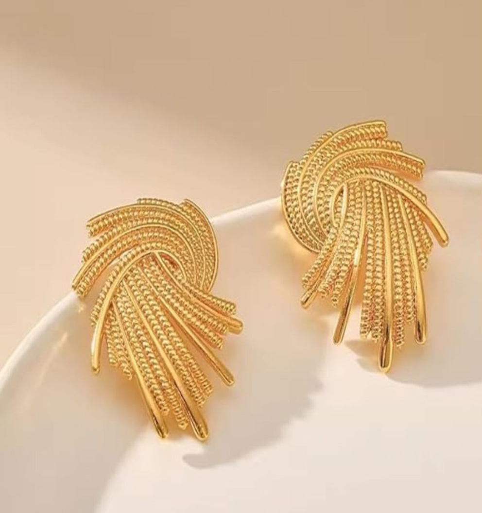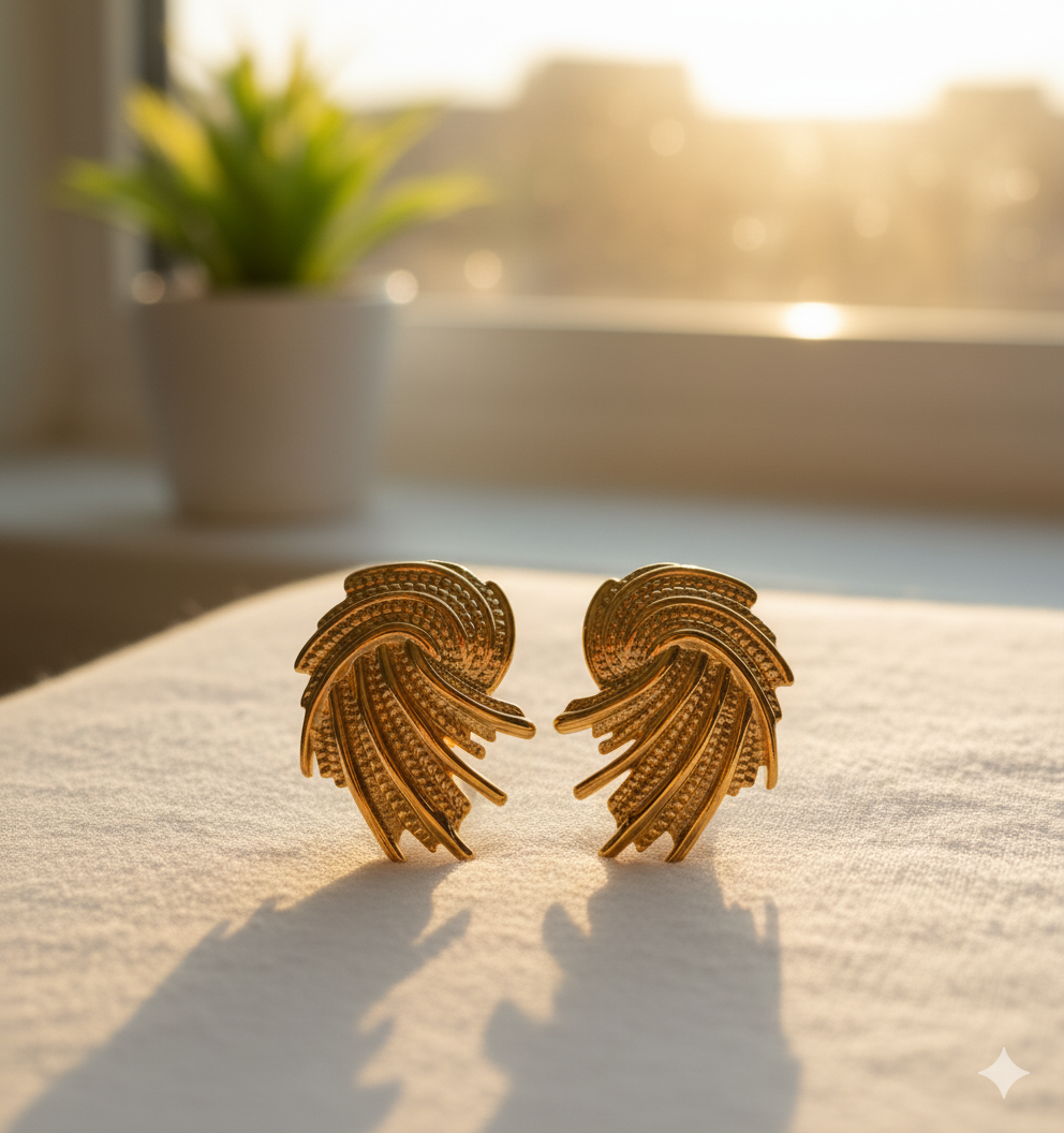 Golden Swirl Textured Earrings – Anti-Tarnish & Skin-Friendly